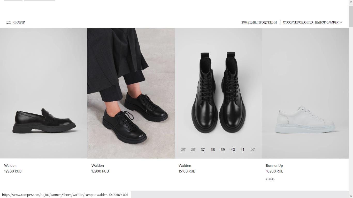 Camper известен качеством своей обуви. В каталоге есть женские и мужские модели. Формы максимально классические и простые, рассчитаны на ежедневную активную носку: прогулки, путешествия, отдых и туризм. Даже в туфлях от Camper можно проходить целый день и не чувствовать усталости.